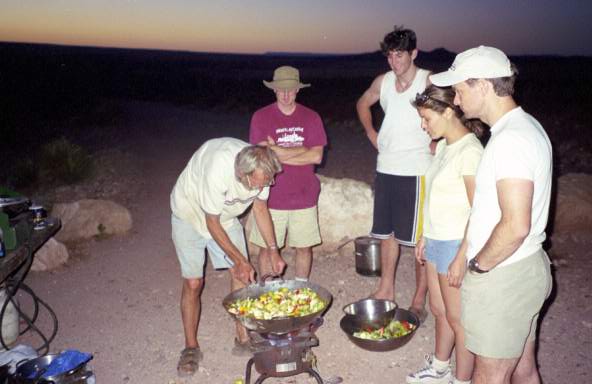 Leonard whipping up an awesome stir-fry. Culinary critics Charlie, Lukas, Florence, and Jeff observe.