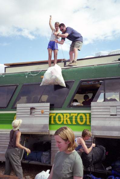 Jennifer, Deirdre, Liz, Tory, and Scott help load up the bus. Tory is working on conquering her fear of heights.